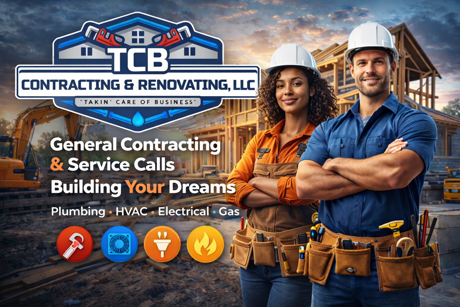 One call for HVAC, plumbing, gas, electrical, and general contracting
